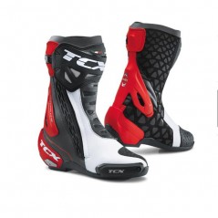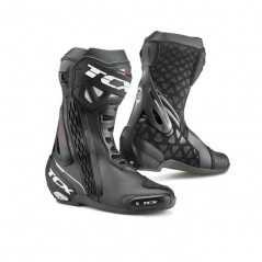 Microfibra ligera y duradera, panel delantero y lateral sobreinyectado y combinado con material elástico; área flex trasera acolchada; protección interna de piel agamuzada para ofrecer la máxima adherencia. Collarín superior en suave microfibra. F.F.C. Fasten Fit Control - Sistema de abrochado interno