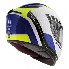 Características Calota 2 tallas de calota Calota pequeña 1550 ± 50 gr Calota grande 1600 ± 50 gr XS S M L XL 2XL Calota de HIRP (Polímero de alta resistencia al impacto) ECE / DOT Visibilidad Pantalla en policarbonato óptico antirayaduras Tear Off. Pantalla preparada para pinlock (incluido) Pantalla con mecanismo de rápida y fácil liberación, pudiendo liberarla con una sola mano Mecanismo de pantalla pivotante que garantiza un cierre uniforme en todo el contorno de la pantalla Deflector nasal incluido Bloqueo metálico de pantalla Cierre óptimo de la pantalla, que garantiza un sellado óptimo contra el viento y el agua en cada cierre Visor MT-V-14 Pinlock ready no incluido Pantalla de 2.2mm de espesor Pantallasolar con 3 posiciones para adaptarse a la nariz Seguridad Sistema de cierre micrométrico metálico Poliestireno interno de múltiple densidad Interior Interior desmontable y lavable Tejidos antialergénicos Ventilación interna