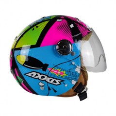 Descripción Axxis PUPPY es un casco Jet infantil compacto, ligero, cómodo y con un diseño divertido y adecuado para niñ@s. Con 2 versiones de gráficas para acomodar los gustos de los niñ@os. GENERAL 1 tamaño de calota Tallas · S · M · L Calota de ABS ECE / DOT Calota 950 ± 50gr VISOR Pantalla de 2.2mm de espesor Pantalla de Policarbonato óptico antirayaduras Cierre óptimo de pantalla Pantalla de fácil liberación INTERIOR Tejidos antialergénicos Interior desmontable y lavable Ventilación interna SEGURIDAD Hebilla de cierre micrométrico Poliestireno interno de múltiple densidad