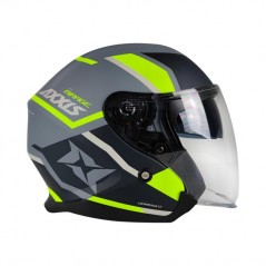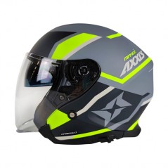 DETALLES DEL PRODUCTO Axxis Jet Mirage SV, disponible con nuevo sistema de gafa solar. Guiado mediante cable, lo que aporta una mayor suavidad. Perfecto ajuste de Pantalla. El mecanismo de la base la empuja contra el perfil de goma garantizando un sellado optimo. Terminada en un reborde que evita turbulencias. La mejor tecnología disponible actualmente en el mercado. Certificación ECE 22.05. Diseñado para uso con gafas. Calota 2 tallas de calota XS S M L XL 2XL Calota de ABS ECE / DOT Calota pequeña 1350 ± 50gr Calota grande 1450 ± 50 gr Pantalla Pantalla solar interna (gafa solar) Seguridad Anilla doble D Poliestireno interno de múltiple densidad Interior Tejidos antialergénicos Interior desmontable y lavable Ventilación interna