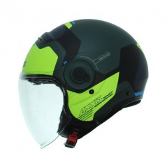 El Raven Jet de AXXIS ofrece grandes sistemas de ventilación tanto en la parte delantera como en la trasera, así como una visera interior para el sol. Su forma de burbuja ofrece una gran protección para toda la cabeza. Los diseños gráficos especiales ofrecen un casco de buen aspecto, con materiales de primera calidad.